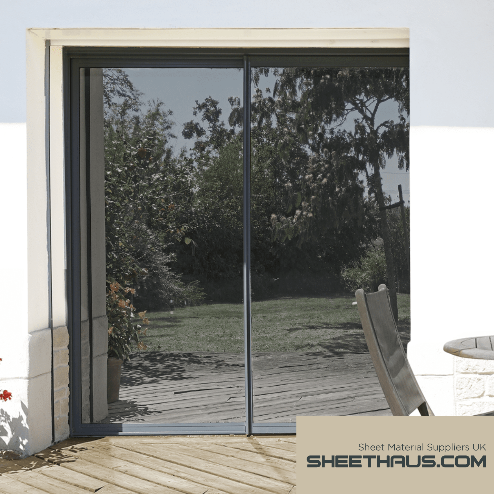 For building use, such as offices and conservatories PMV (Privacy Mirror Vinyl) may be used, where it’s lower heat absorption minimises the risk of cracking. It is not to be used on wire glass. Care must be taken when fitting these films to glazing. In extreme cases the heat absorption and other factors such as shading can cause glazing to crack.